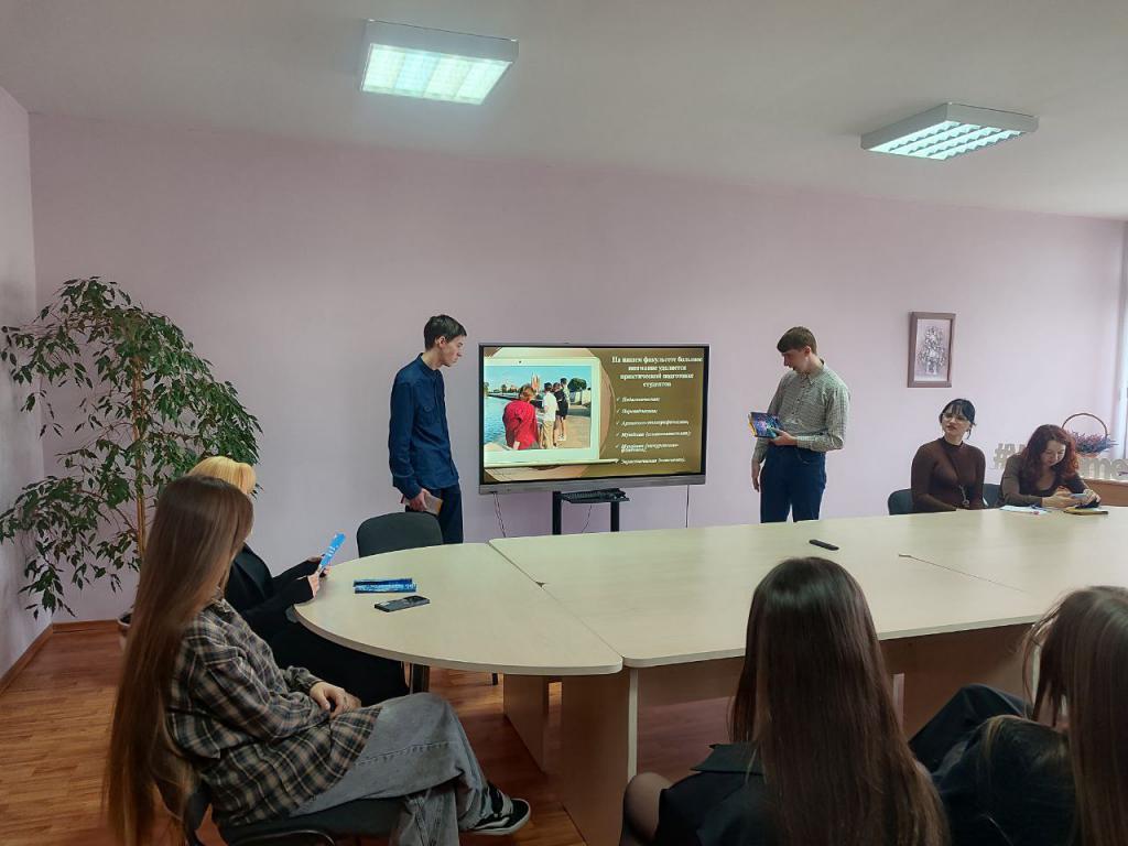 Студентами были представлены актуальные специальности, формы обучения, необходимые предметы для поступления и проходные баллы 2024-2025 учебного года.