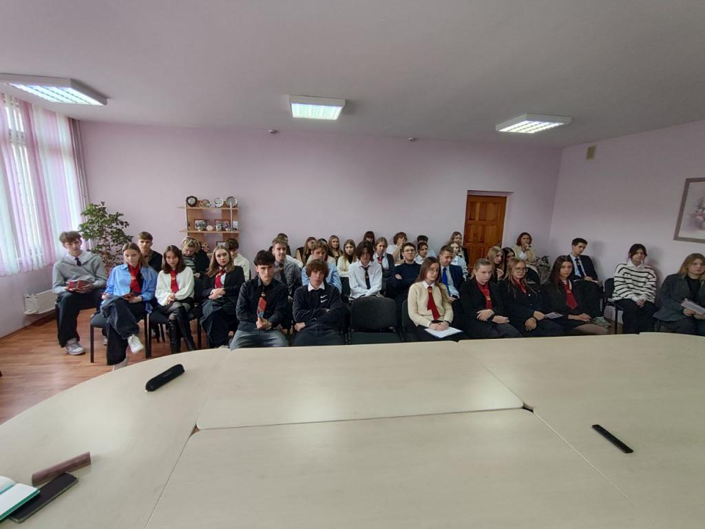 16 октября 2025 года старший преподаватель кафедры философии и специальных исторических дисциплин Шпет Михаил Михайлович совместно со студентами первого курса специальности музейное дело Чижевским Никитой и Подберёзкиным Павлом провёл профориентационное мероприятие на базе ГУО "Гимназия № 71 г. Гомеля".