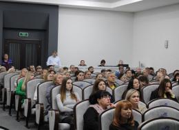 В канун очередной даты освобождения г. Гомеля от немецко-фашистских захватчиков заведующий кафедрой философии и специальных исторических дисциплин С.Ф. Веремеев выступил перед работниками РУП «Гомельэнерго». В ходе своего выступления он рассказал об особенностях немецкого оккупационного режима в период Великой Отечественной войны, предыстории освобождения Гомеля и Гомельщины от оккупантов, самом освобождении, а также затронул вопрос о послевоенном восстановлении города. Сергей Федорович напомнил собравшимся, что при освобождении Гомеля Красное знамя было водружено на здании городской электростанции. На этой территории сейчас находится РУП «Гомельэнерго». Выступление сопровождалось показом презентации.
